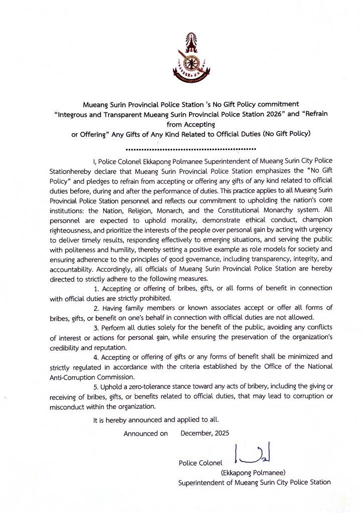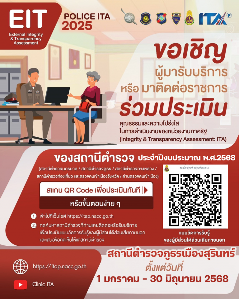 วันนี 24ส.ค.2568 เวลา 09.00น-15.00น. พ.ต.อ.เอกพงษ์ พลมณี ผกก.สภ.เมืองสุรินท์ มอบหมายให้ พ.ต.ต.บวร สห