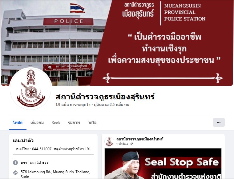 - สื่อสารทางเพจ Facebook ของสถานีตำรวจภูธรเมืองสุรินทร์