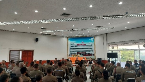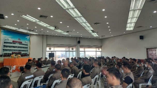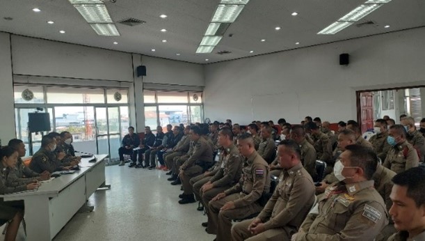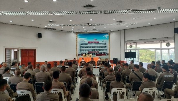 - หัวหน้าสถานีตำรวจชี้แจงและให้ข้อมูลเกี่ยวกับการประเมินแก่เจ้าหน้าที่ตำรวจในหน่วยงาน