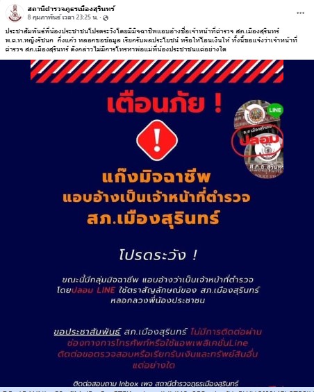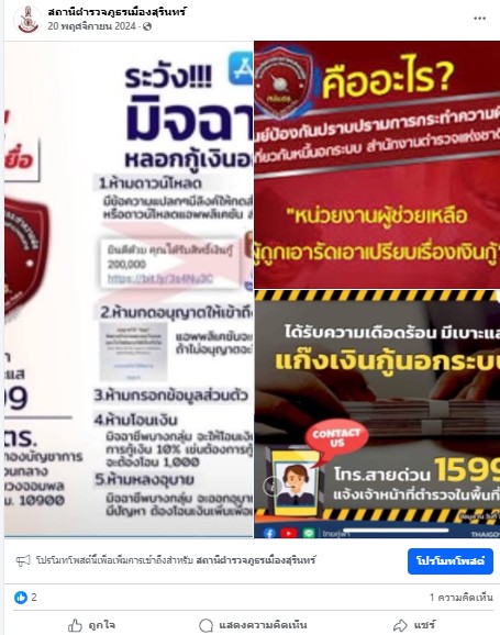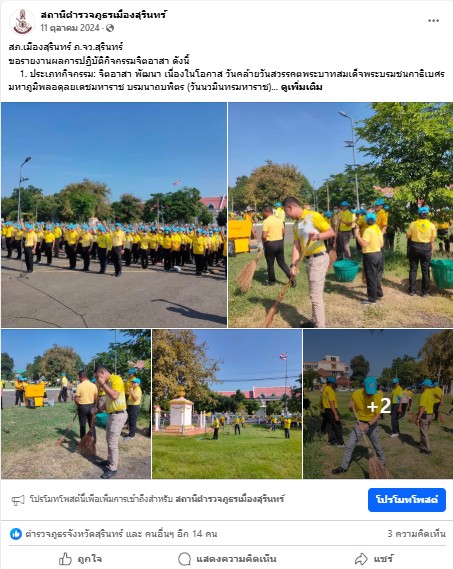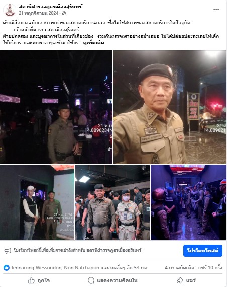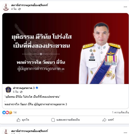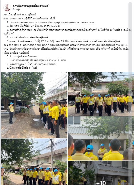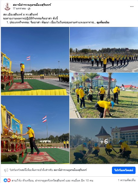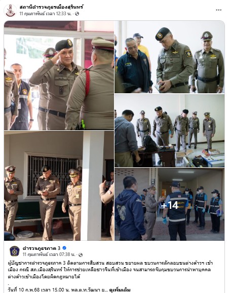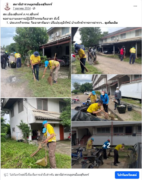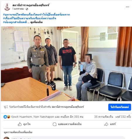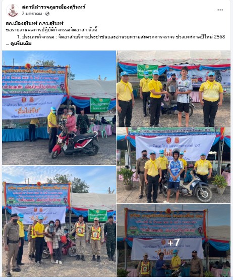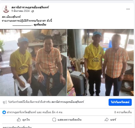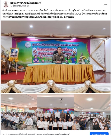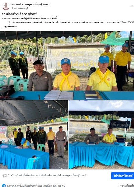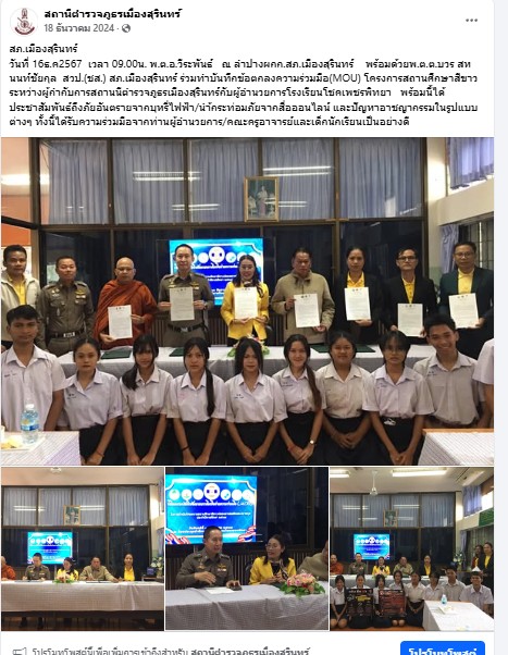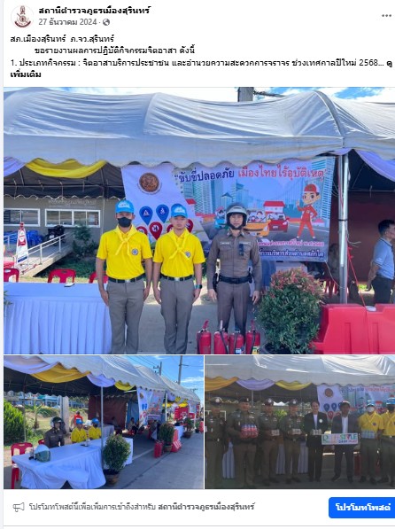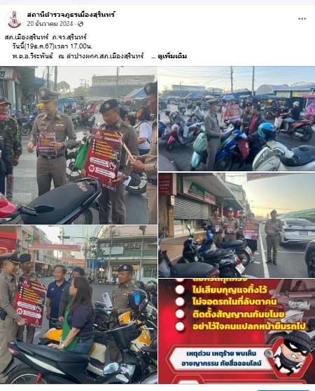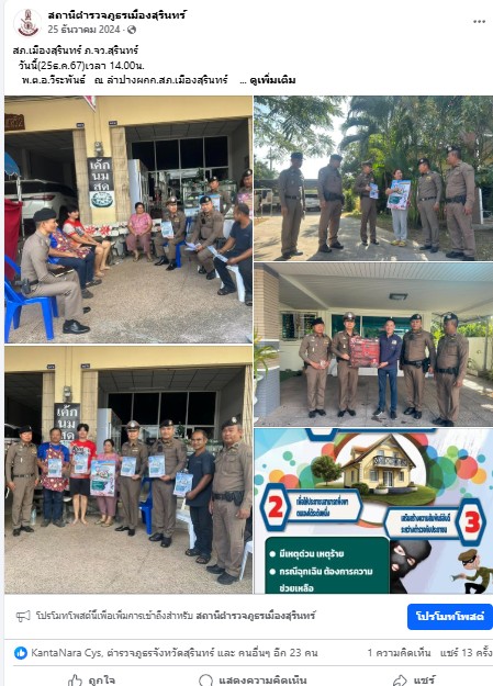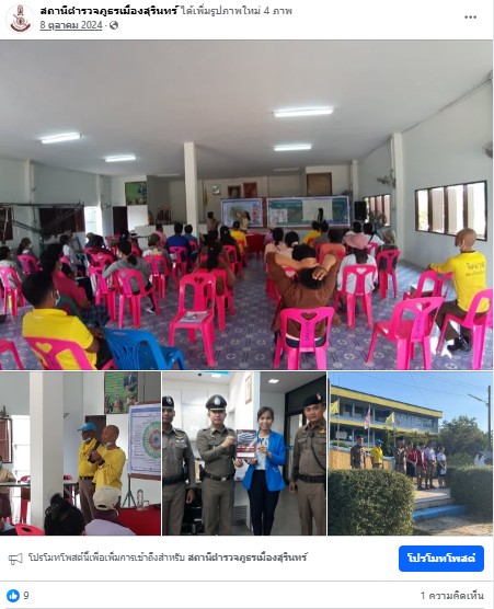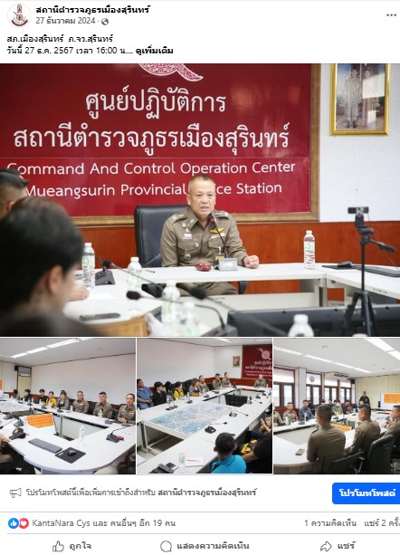 และFanPage ของสถานีตำรวจภูธรเมืองสุรินทร์ https://www.facebook.com/profile.php?id=100064499867648&locale=th_TH