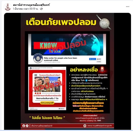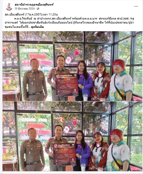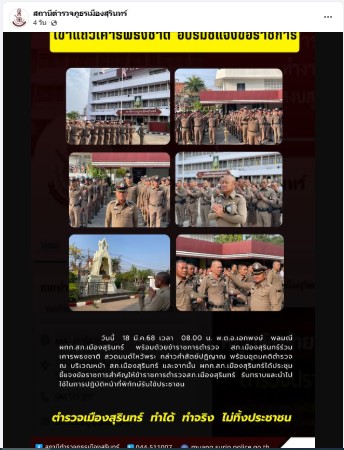 เปิดเผยทางเว็บไซต์แบบเป็นทางการของสถานีตำรวจภูธรเมืองสุรินทร์ https://muang.surin.police.go.th/