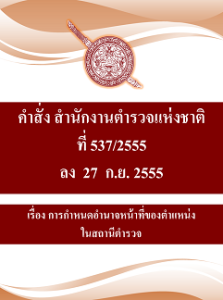 คำสั่งสำนักงานตำรวจแห่งชาติ ที่ 537/2555 เรื่องการปฏิบัติและอำนาจหน้าที่รับผิดชอบของพนักงานสอบสวนหรือผู้ปฏิบัติงานสอบสวน ดาวน์โหลด